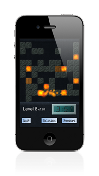 Challenge yourself in this simple but smart little puzzle game. Set fire to all of the wooden blocks and finish 20 increasingly difficult levels in the shortest amount of time. You start a level by setting fire to any one of the wooden blocks. From there the fire can only move either horizontally, vertically or diagonally, and can not move over an empty space. Simple rules, and easy to begin with but at the later levels it REALLY is a challenge. Do you have what it takes? Each time you play the game new levels are generated, producing a unique game experience every time. There are literally millions of different levels to be played! Original concept by Jérôme Lulling. See also www.comboflame.com
